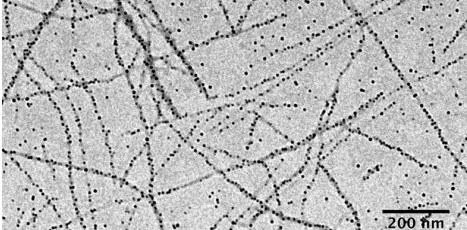 24th April 2017. DOI: 10.1038/nnano.2017.58 Amyloid Fibril Systems Reduce, Stabilize and Deliver Bioavailable Nanosized Iron (Visuel « protéines de lactosérum comestibles portant des nanoparticules de fer (points noirs) »@Yi Shen / ETH Zurich)