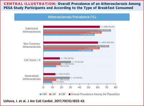 L’incidence de l’athérosclérose est plus élevée chez ceux qui sautent le petit-déjeuner : les auteurs concluent que le fait de sauter le petit-déjeuner est bien associé à un risque accru d'accumulation de tissu adipeux dans les artères. Cette augmentation est jugée comme indépendante des autres facteurs de risque cardiaque. Cependant, il semble plus probable que les habitudes de petit-déjeuner, évaluées ici, sur une période courte, soit 15 jours, soient plus globalement le reflet de mauvaises habitudes alimentaires e général et d’un mode de vie globalement plus malsain. L’étude ne démontre pas en effet la corrélation entre l’absence de petit-déjeuner et l’incidence de l’athérosclérose.