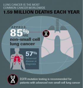 Au cours des 10 dernières années, une famille de médicaments, appelés les inhibiteurs de tyrosine kinase (ITK), a émergée comme traitement pour les patients atteints d'un cancer du poumon dont la tumeur présente une mutation du récepteur au facteur de croissance épidermique EGFR. Chez ces patients, les médicaments agissent en bloquant les mutations des récepteurs à l'EGF dans les cellules cancéreuses, permettant ainsi de stopper la prolifération cellulaire. Il est essentiel que les professionnels de santé identifient les patients présentant ces mutations EGFR afin que ces patients puissent se voir prescrire un médicament ITK, la recherche ayant prouvé qu'il était plus efficace que la chimiothérapie dans cette population. Les patients ne présentant pas de mutation EGFR doivent au contraire suivre une chimiothérapie standard, plus efficace dans ce cas que les ITK.
