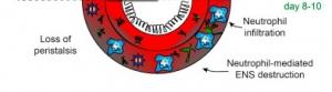 Le surprenant « voyage » du virus de l'herpès : sur la souris les chercheurs constatent que le virus se propage à partir des organes génitaux vers les nerfs dans la moelle épinière, puis infecte les neurones présents dans le côlon et les tue. Ces dommages aux neurones du côlon bloquent la circulation des aliments le long du tractus digestif (voir schéma ci-contre), ce qui favorise la constipation, une cause bien connue (fécalome) de risque de rétention urinaire.