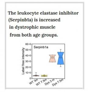 Les scientifiques ont utilisé la protéomique ou un ensemble de techniques permettant d'étudier les protéines d'une cellule et les taux de protéines anormaux, ici des cellules musculaires chez la souris. Les chercheurs identifient l'élastase, une protéine produite par des globules blancs, les neutrophiles, à des niveaux plus abondants dans le muscle dystrophique vs muscle sain. Or l'élastase inhibe l'action de plusieurs protéines du tissu conjonctif de différents organes, dont le muscle. Alors que l'enzyme est produite par les neutrophiles qui jouent un rôle important dans la réponse inflammatoire et immunitaire, la protéine est pressentie comme un facteur clé possible du développement de la dystrophie musculaire.