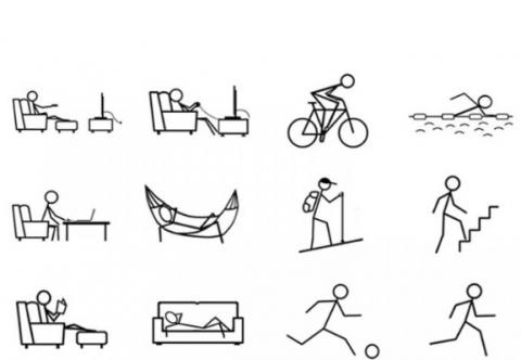 L’étude est menée avec de jeunes adultes, assis face à l’ordi et invités à contrôler un avatar à l'écran. Sur l’écran, apparaissent ensuite sous forme de flashs de petites images (visuel ci-dessous), qui évoquent soit l'activité physique, soit l'inactivité physique. Les participants devaient déplacer l'avatar le plus rapidement possible vers les images d'activité physique et l’éloigner des images d'inactivité physique - et vice versa. Durant le test, les électrodes enregistraient leur activité cérébrale. L’expérience montre que les participants sont généralement plus rapides à se déplacer vers des images actives et loin des images paresseuses, mais que pour ce faire, leur cerveau s’active plus fort.