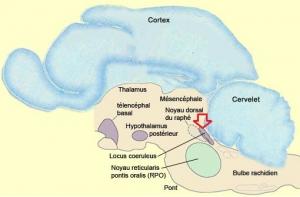 Identifier la zone du cerveau qui abrite ce sentiment de solitude marque donc une étape importante dans la compréhension de cette émotion et l'espoir de pouvoir un jour la traiter pour l'apaiser. Il s'agit précisément d'un amas de cellules, situé près de l'arrière du cerveau dans une zone appelée le noyau dorsal du raphé, impliqué -logiquement- dans la sociabilité. Cet amas cellulaire se développe normalement après une période d'isolement social, montrent ici les chercheurs sur la souris.
