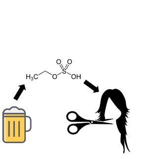 L'éthylglucuronide (EtG) et le sulfate d'éthyle (ETS) sont 2 métabolites directs de l'éthanol. L'EtG est déjà connu pour s'accumuler dans les cheveux et s'est déjà révélé être un biomarqueur fiable pour la détection de la consommation chronique d'alcool. ETS a été analysé dans le sang et l'urine mais n'a jamais été rapporté dans les cheveux.