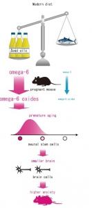 Quelle explication ? Le Pr Osumi, auteur principal de l'étude explique que l'anomalie du cerveau trouvée chez ces « bébés » souris est causée par un vieillissement prématuré des cellules souches neurales fœtales qui produisent les cellules du cerveau. Un vieillissement prématuré bien induit par un déséquilibre des oméga-6 et oméga-3.