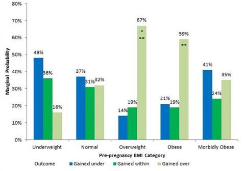 Plus d'une mère sur 2, ici âgées de 15 à 24 ans, a pris du poids en excès durant sa grossesse. Le surpoids ou l'obésité avant la grossesse sont confirmés comme des facteurs de prise de poids excessive durant la grossesse. Les chercheurs appellent ainsi les médecins à considérer l'IMC avant la grossesse, en particulier chez les mères les plus jeunes, comme un facteur prédicteur puissant de prise de poids excessive pendant la grossesse et d'obésité plus tard dans la vie.