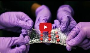 Une première application, un pansement intelligent : Ce pansement constitué d'une feuille d'hydrogel comprenant des capteurs de température régulièrement espacés et des petits réservoirs de médicament permet de traiter la plaie sur mesure et de manière hypertopique. La matrice est constituée de cet hydrogel, un matériau caoutchouteux, principalement composé d'eau, capable d'accueillir toute une variété de dispositifs électroniques comme des fils conducteurs, des puces semi-conductrices, des lumières et les capteurs de température LED. Les chercheurs ont également prévu de petites percées à travers l'hydrogel afin que les médicaments puissent y circuler. Le pansement surveille la température de la peau et libère le médicament selon les données du capteur. Le dispositif a été pensé, dans un premier temps, pour la prise en charge des brûlures ou d'autres maladies de la peau : quand l'un des capteurs détecte une augmentation anormale de la température, le pansement intelligent libère le médicament à l'endroit précis et peut même sélectionner un médicament spécifique à partir de l'un de ses réservoirs. Enfin, lorsqu'il est appliqué sur une zone délicate comme le coude ou du genou, il conserve toute la flexibilité nécessaire, en gardant intacte son « électronique embarquée ».