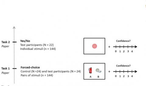 La démonstration est ici apportée avec 24 participants testés en laboratoire il y a environ 10 ans alors exposés durant quelques secondes et successivement à des images simples et neutres émotionnellement. Leur mémoire est mise à l’épreuve 10 années plus tard, avec 2 tâches de mémoire successives permettant d’évaluer la capacité des participants à reconnaître les stimuli observés lors de l'expérience initiale. La première est une tâche à choix forcé aussi proche que possible de la tâche initiale, mais avec un nouvel ensemble de stimuli distracteurs (voir Task 1, illustration du bas). La seconde est un questionnaire Oui / Non demandant aux participants si les items présentés correspondent ou non aux anciens items. L’expérience montre que des images vues pendant quelques secondes peuvent être reconnues une dizaine d'années plus tard :