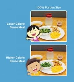 La plupart des enfants mangent trop parce qu'on leur sert de trop grandes portions d'aliments, souvent à forte densité calorique, cependant un choix d'aliments plus équilibré et une réduction raisonnable des portions pourrait contribuer à réduire considérablement l'apport calorique global des enfants. Les chercheurs du département des sciences nutritionnelles de la Penn ont évalué ces effets au cours de déjeuners chez 120 enfants, âgés de 3 à 5 ans, de 3 structures d'accueil d'enfants, une fois par semaine, pendant 6 semaines. Au cours de ces 6 déjeuners, tous les aliments ont été servis selon 3 tailles de portions (100%, 150% ou 200%) et 2 niveaux de densité calorique (100% ou 142%). Le menu (poulet, macaronis, fromage, légumes, compote, ketchup, et lait) a été adapté en conséquence. L'expérience montre :