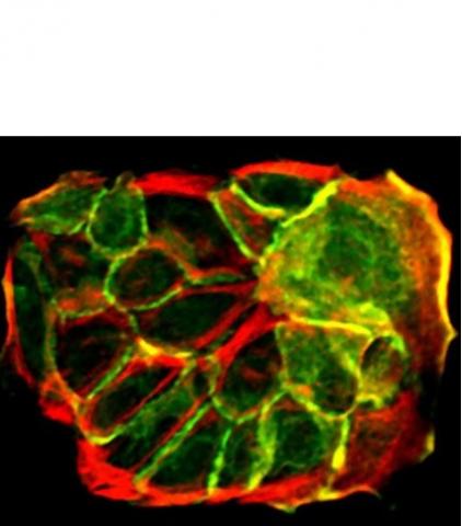 Les cellules cutanées savent où aller et ce qu'elles sont censées faire ! Les chercheurs ont analysé des tissus de souris embryonnaires et des cellules souches en culture (Visuel ci-dessous) en laboratoire, pour décrypter ce mécanisme élégant basé sur un principe de guidage mécanique : c’est en effet le stress local induit par un « surpeuplement cellulaire » qui guide la division et la différenciation cellulaire : « Nous observons que la division des cellules souches induit un effet d'encombrement local sur la couche de cellules souches qui influence les cellules du voisinage de cet événement, et cette (com)pression déclenche la différenciation de la cellule voisine », explique l’auteur principal. Les cellules serrées modifient leurs propriétés, ce qui leur permet de « s'échapper » de la contrainte locale de pression. En un mot, les cellules perçoivent ce que font les cellules voisines et agissent de manière complémentaire et par compensation. Ce processus permet de maintenir la taille, l'architecture et la fonction des tissus.