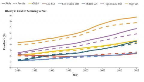 Les chercheurs de nombreux instituts de recherche dont l'Institute for Health Metrics and Evaluation (IMHE), basé à l'Université de Washington (Seattle) ont analysé les données de 68,5 millions de personnes pour évaluer ces tendances de prévalence du surpoids et de l'obésité chez les enfants et les adultes entre 1980 et 2015. Ces fardeaux ont été quantifiés principalement via les données d'Indice de masse (IMC), selon l'âge, le sexe, la cause dans 195 pays entre 1990 et 2015 (un IMC compris entre 25 et 29,9 correspond à un surpoids et > 30 à une obésité). Ensuite, les chercheurs ont évalué le lien entre un IMC malsain et les problèmes de santé dont les maladies cardiovasculaires, le diabète et le cancer.Cette analyse révèle que,