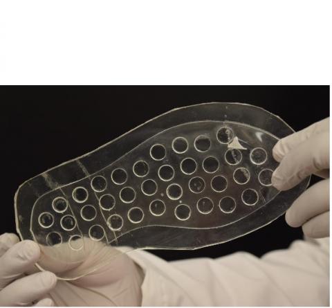 Une libération d’oxygène ciblée sur le site de la plaie : les ingénieurs ont ici utilisé le laser pour façonner le caoutchouc à base de silicone en semelle interne puis pour créer de petits réservoirs qui libèrent de l'oxygène de manière ciblée sur le site de la plaie. Le silicone est flexible et présente une bonne perméabilité à l'oxygène et l’usinage au laser permet d’ajuster cette perméabilité et de cibler uniquement le site de la plaie, qui est hypoxique, plutôt que de submerger le reste du pied avec un excès d'oxygène qui serait toxique. Les premières simulations de l'équipe montrent que la semelle intérieure peut fournir de l'oxygène au moins 8 heures par jour sous la pression d'un patient dont le poids corporel serait compris entre 53 et 81 kg. Mais la technique permet aussi d’adapter la semelle à des poids plus élevés.