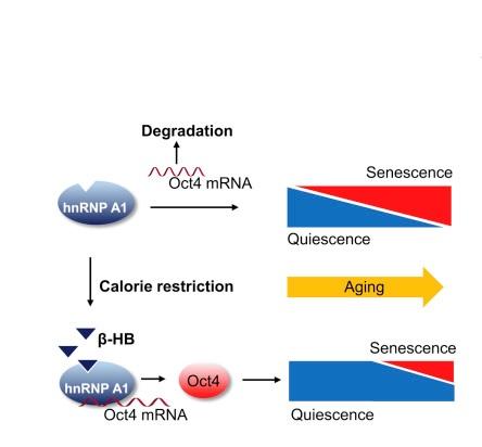 Une molécule clé pour la santé endothéliale : alors que les cellules sénescentes ne peuvent plus se multiplier et se diviser, le β-hydroxybutyrate relance la division et freine le vieillissement cellulaire. Parce que cette molécule est produite pendant la restriction calorique, en cas de suralimentation ou d’obésité, la molécule est supprimée, ce qui accélère le vieillissement. En temps normal, le β-hydroxybutyrate se lie à une protéine spécifique qui lie l'ARN, ce qui augmente l'activité d'un facteur de cellules souches dans le muscle lisse vasculaire et les cellules endothéliales -ici vu chez la souris. De plus, ce facteur de cellules souches augmente un facteur clé contre la sénescence induite par les dommages à l'ADN, et favorise ainsi la « jeunesse » des vaisseaux sanguins.